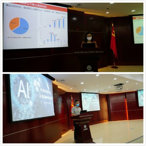 会上,来自研究室的组长代表王利、机关组长代表李沙沙和企业组长代表何卓铭,分别介绍了小组活动的开展经验,及通过开展理论和专业学习,对科研攻关和行政管理效益提升发挥的积极作用。随后,第四十三学习小组组长王宁作题为《中美科技对比及美国科技政策》的优秀课程分享。报告通过大量详实的调研数据,鲜明呈现了中美科技的差异,引发了在座学习组长的广泛共鸣和思考。