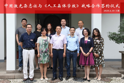6月10日,中国激光杂志社与《人工晶体学报》战略合作签约仪式在中国科学院上海光学精密机械研究所举行。根据双方合作协议,《人工晶体学报》加入中国光学期刊联盟、中国光学资源库,双方本着互惠互利、共同进步的原则,就资源共享、平台共建、共同提高期刊学术质量、推动学术交流等方面开展深入合作。