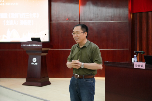 “四史”学习党课邀请到“共和国第一代战斗机飞行员”孙佑民做了题为“我的飞行三十年”的专题报告。孙佑民结合自身经历回忆和描述了上世纪40年代至今祖国的成长与发展变化,讲述了自己从陆军到空军以及“飞行30年”的故事。他用朴实生动的语言为与会党员描述了自己一次次“空中排险”的经历,分享了自己飞行中“挑战不可能”的几个小故事。专业的飞行技术、一丝不苟的工匠精神赢得了大家的阵阵掌声。孙老勉励大家要勇于挑战科研岗位工作上的不可能,为中国的科研技术进步积极贡献自己的力量。