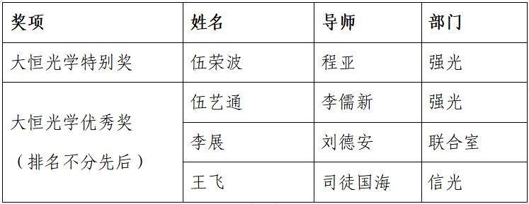 上海光机所四名博士研究生荣获2020年中国科学院大恒光学奖学金