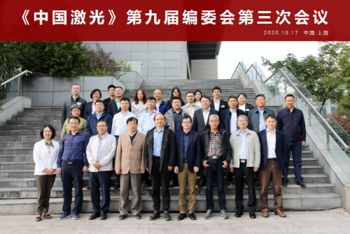 2020年10月17日,《中国激光》第九届编委会第三次会议在上海召开。主编李儒新院士、执行主编钟敏霖教授等来自全国各地的22名编委,中国激光杂志社总经理杨蕾等出席了本次编委会。会议总结了《中国激光》2020年所开展的工作,制定了新的目标和计划,并重点讨论了2021年期刊两大新变化的工作计划。