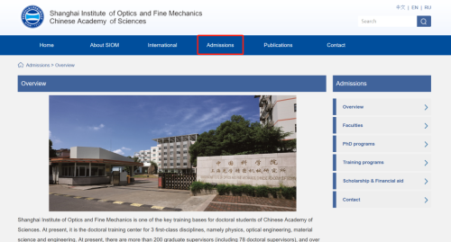 上海光机所英文网站—国际学生招生专栏网址:http://english.siom.cas.cn/Admissions/