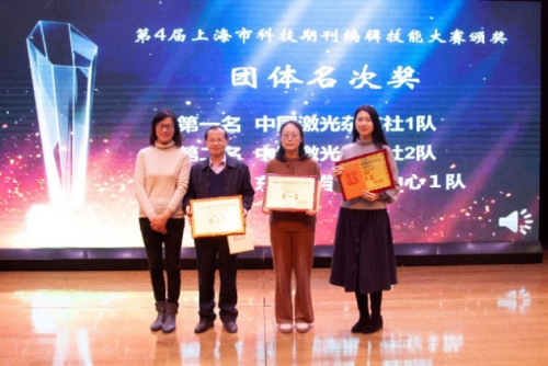 近日,第四届上海市科技期刊编辑技能大赛颁奖仪式在2020年度上海市科技期刊学会会员大会暨学术年会期间举行。中国激光杂志社获得团队冠军(吴秀娟、乔娜、苏岑),以及团队亚军(王晓琰、游珺、何卓铭),吴秀娟荣获个人第二名,王晓琰、乔娜、游珺、贾璐瑶、苏岑获得个人优秀奖,中国激光杂志社获得优秀组织奖。