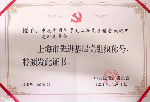 习近平总书记指出,伟大时代呼唤伟大精神,崇高事业需要榜样引领。在庆祝中国共产党成立100周年之际,上海光机所党委荣获上海市先进基层党组织荣誉称号。