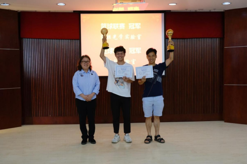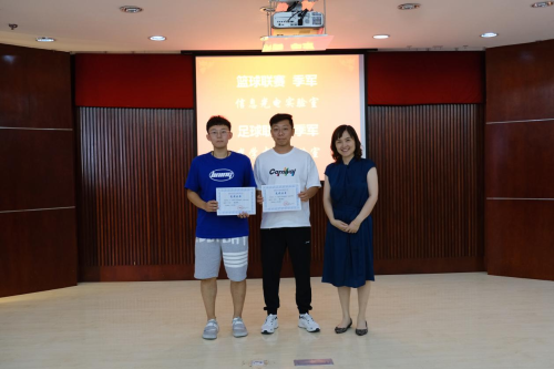 胡卫芳宣读2020-2021赛季联赛的获奖名单。篮球联赛冠军为薄膜光学实验室,亚军联合实验室,季军信息光电实验室,殿军单元技术实验室。足球联赛冠军为联合实验室,亚军单元技术实验室,季军光学中心实验室,殿军信息光电实验室。本届联赛还增设三项个人奖项,薄膜实验室的郑毅帆荣获篮球MVP,单元技术的胡斌荣获足球最佳射手,联合实验室的梁潇荣获足球助攻王。随后,举行了隆重的颁奖仪式。