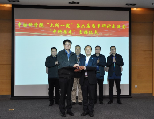 “六所一院质量工作交流会”作为中科院光机口单位在质量工作交流的重要平台,于2016年由长春光机所、上海光机所、上海技物所、西安光机所、安徽光机所、光电技术研究所、光电院(现为“空天信息创新研究院”)等单位共同发起,约定每年由一个单位承办,组织开展质量工作研讨交流活动。继2016年长春光机所承办首届质量交流会后,光电所、上海技物所、西安光机所、安徽光机所和空天院分别承办了第二至第六届交流会。上海光机所为2022年第七届“六所一院”质量工作交流会的承办单位。会议期间,冷雨欣副所长与空天院党委副书记吴海涛进行了“中科质光”会标的交接仪式。