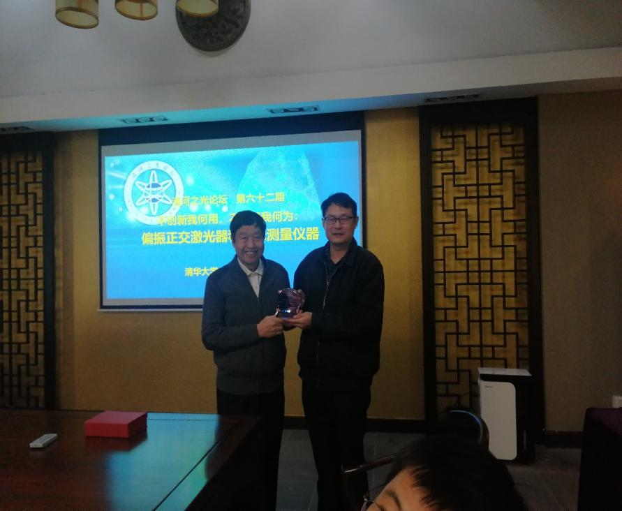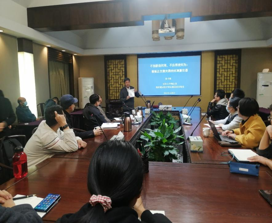 报告中,张书练教授从科研人员致力创新和应用的重要意义出发,结合其团队开展相关研究的丰富经历,介绍了偏振正交激光器、激光器纳米测尺(激光模竞争测微仪)、固体微片双频激光干涉仪、激光回馈光学相位延迟测量仪、激光回馈共焦显微系统的关键技术和应用发展现状。与会者兴趣浓厚,讨论热烈,就偏振正交激光器纳米测量仪器的应用和发展前景等进行了深入探讨。