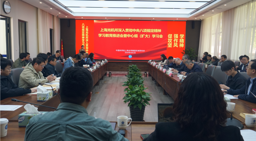 4月3日下午,上海光机所召开深入贯彻中央八项规定精神学习教育推进会暨党委理论中心组(扩大)学习会,推进研究所深入贯彻中央八项规定精神学习教育相关工作,开展第一期学习班集中学习研讨。上海分院党建督导组组长成建军出席会议,所领导班子、党委委员、纪委委员、科研单元负责人、职能部门负责人、支部(总支)书记等参会。会议由党委委员、纪委书记彭芳主持。