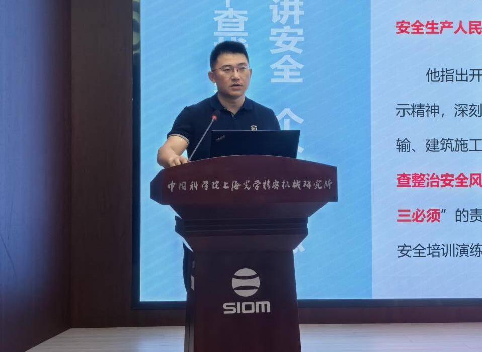 综合管理部保密与安全处王巍传达部署了上海光机所“安全生产月”活动实施方案、2025年度防台防汛工作方案,以及通报了研究所近期安全工作情况。
