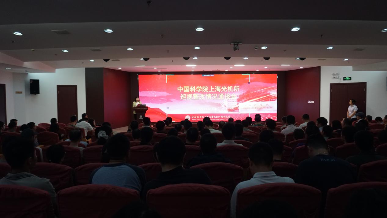 按照院党组的统一部署和要求,10月17日上午,上海光机所召开巡视整改情况通报大会。上海光机所领导班子成员,党委委员,纪委委员,所务委员,职能与支撑部门负责人,科研单元负责人,党总支、党支部以及群团组织负责人,副高及以上专业技术职务人员、六级及以上职员共400余人参会。上海分院党建工作处(纪检办公室)副处长(主持工作)过宣帆列席会议。会议由纪委书记彭芳主持。