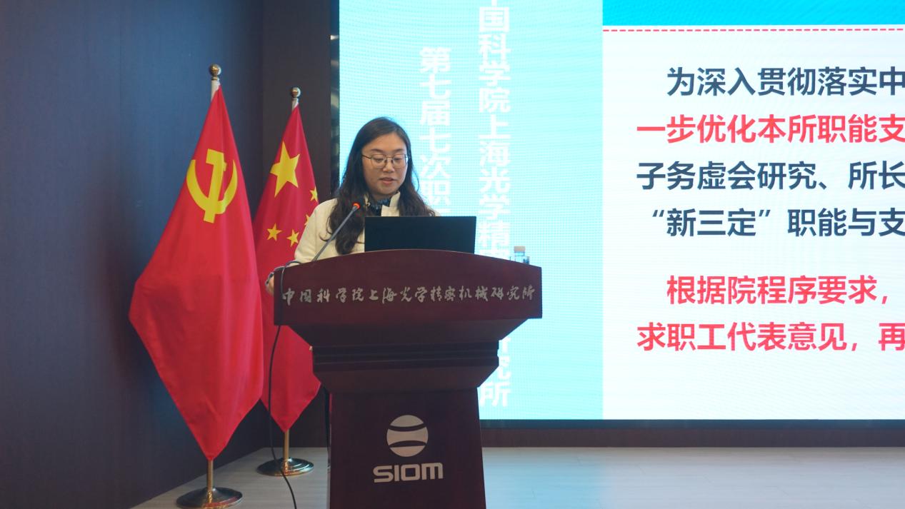 综合管理部吴燕华作《上海光机所“新三定”职能支撑部门优化方案》的说明。会议明确,本次优化是上海光机所认真落实院“新三定”精神,进一步优化机关部门设置、明确处室责任、规范事权的重要举措,从而加强管理队伍建设,形成与抢占科技制高点更相适配的行政运行机制。