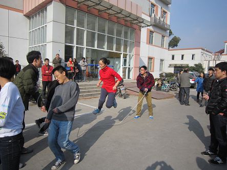 12月31日下午,阳光明媚,寒风凛冽,2014年上海光机所冬季体育健身运动会在职工活动中心等地拉开了帷幕,全所共近700位职工、研究生参加了跳长绳、跳短绳、定点投篮、踢毽子、足球射门、飞镖、套圈、背球接力等八个项目的团体比赛。