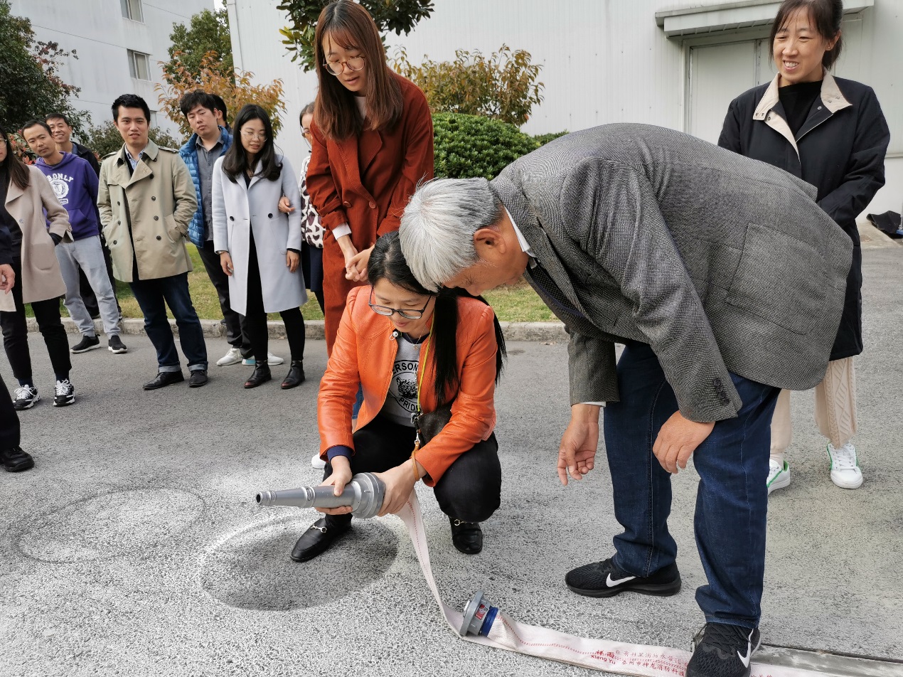 顾秀尧介绍了常见火灾发生的因素及自救要点,强调了冬季用电安全要求,最后详细讲解并示范了常用消防设施的使用方法。卢其明手把手地指导参加培训学员如何使用灭火器及消防水枪。每位学员认真学习、团结配合、积极操练。整个演练过程井然有序,达到了预期效果。