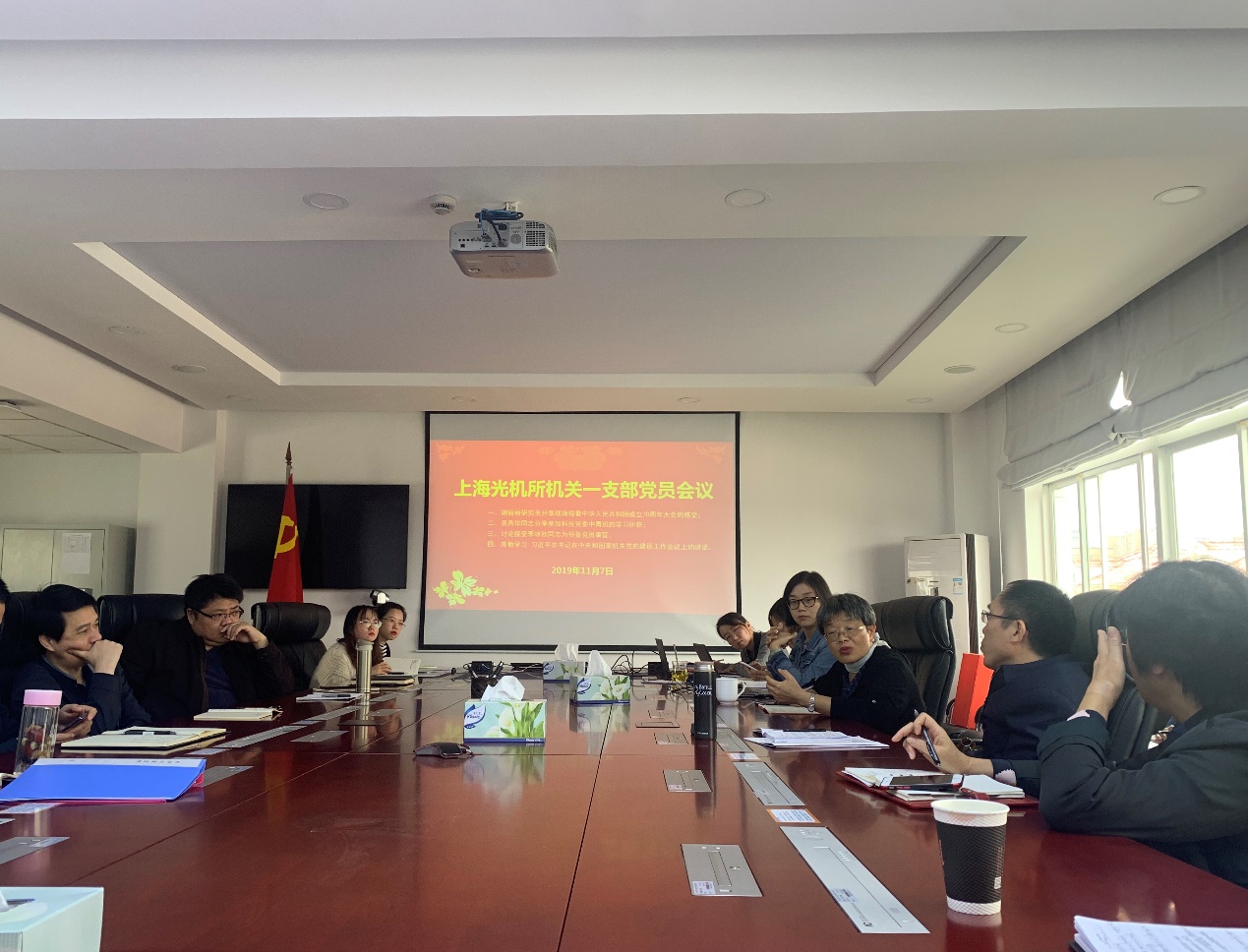 11月7日上午,机关一党支部在1号楼512会议室召开支部党员大会。会议学习了习近平总书记在中央和国家机关党的建设工作会议上的讲话精神和十九届四中全会精神,并讨论了接受李冰欧同志为中共预备党员的事宜。会议还邀请党委委员、研究员胡丽丽分享了现场观看中华人民共和国成立70周年大会的感受,综合办公室主任助理吴燕华分享了参加上海科技系统中青班的学习所获。本次会议由支部书记沈力主持。