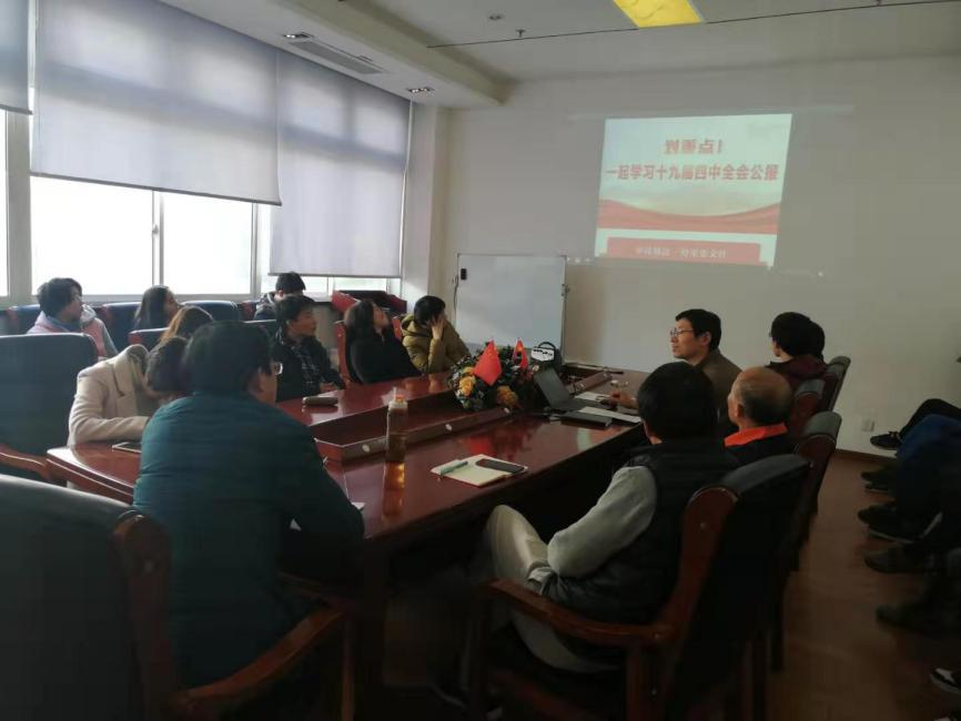 第一项议题,全体党员共同学习党的十九届四中全会精神。通过研读全会公报内容,大家深刻体会到坚持和完善中国特色社会主义制度、推进国家治理体系和治理能力现代化,是全党的一项重大战略任务。全体党员要坚定信心、锐意进取、开拓创新,紧密地团结在以习近平同志为核心的党中央周围,为实现“两个一百年”奋斗目标、实现中华民族伟大复兴的中国梦而努力奋斗