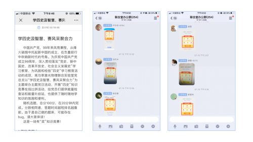 本次知识竞赛试题由“党史、新中国史、改革开放史、社会主义发展史”四部分组成,每个支部指定一个方面,由支部党员学习后自主命题,提交到联合党总支进行汇总。经支委审核后形成题库,每次答题从题库中随机抽取50题,以限时答题的形式,形成一个“自学、自检、自查”的良性循环,以起到“吾日三省吾身”的学习效果。