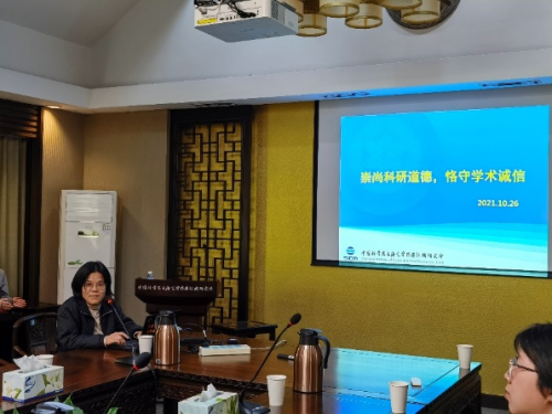 纪律委员桂有珍研究员作了“崇尚科研道德,恪守学术诚信”的报告,带领全体职工和研究生从科研诚信建设的新形势出发,学习了国家、各部委、中科院等关于科研诚信的相关制度,了解了科研失信行为的各种表现形式,并通过许多案例展示了违背科研道德、学术不端以及学术不当的严重后果。