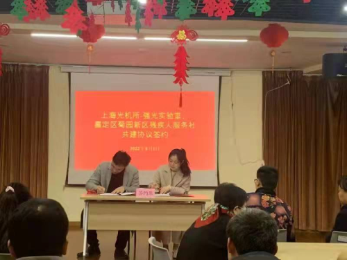 为大力弘扬奥林匹克精神与雷锋精神,在北京冬残奥会来临之际,2022年3月1日,中国科学院上海光学精密机械研究所强场激光物理国家重点实验室党总支牵头组织团支部与上海市嘉定区菊园新区残疾人服务社举行“结对共建”签约仪式,并联合开展了“融合与共享,一起向未来”主题活动。菊园新区残疾人服务社李艳婷,强光一支部书记姚金平、所团委委员杨晓骏、尚蔚以及强光实验室青年代表参加活动。