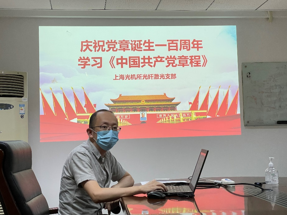 2022年9月1日下午,空间激光信息技术研究中心光纤激光党支部在9号楼五楼会议室开展支部书记上党课活动,组织职工和学生学习《中国共产党章程》和习近平总书记重要讲话精神。会议由光纤激光党支部书记周佳琦主持。
