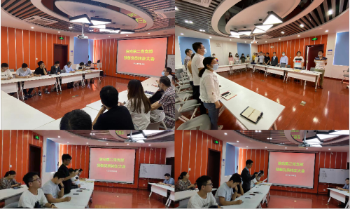 首先由支部书记黄立华介绍本次党员大会主要议题——关于王刚同志、赵宇两位同志的转正审议。随后,两位预备党员先后进行了发言,讲述自身在预备期中的工作、学习情况。随后,入党介绍人及同学、同事相继发言,从各个方面对两名预备党员的表现进行介绍。两名预备党员均为学生党员,在预备期间恰逢上海疫情,两位都积极参与所里的抗疫志愿工作,冲在一线,努力为抗疫工作贡献自己的力量。同时,在日常生活工作中,他们并不仅仅关注科研学习,更是积极参与到团委和研会的工作中,充分发挥党员先锋模范作用,展现了年轻学生积极向上的精神风貌。最后,大会按流程对两位的转正申请进行投票表决。