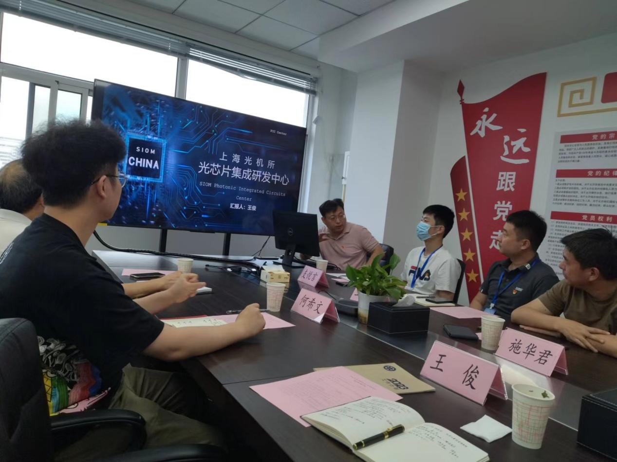 首先,双方介绍了各自单位及所在支部党建及业务情况。徐杰介绍了32所基本情况及历史沿革,并介绍了计算平台部党建特色活动,尤其是以人为本的党建思路。王俊介绍了上海光机所基本情况以及光芯片中心在光芯片空间通信、传感、与计算等方面的业务情况。