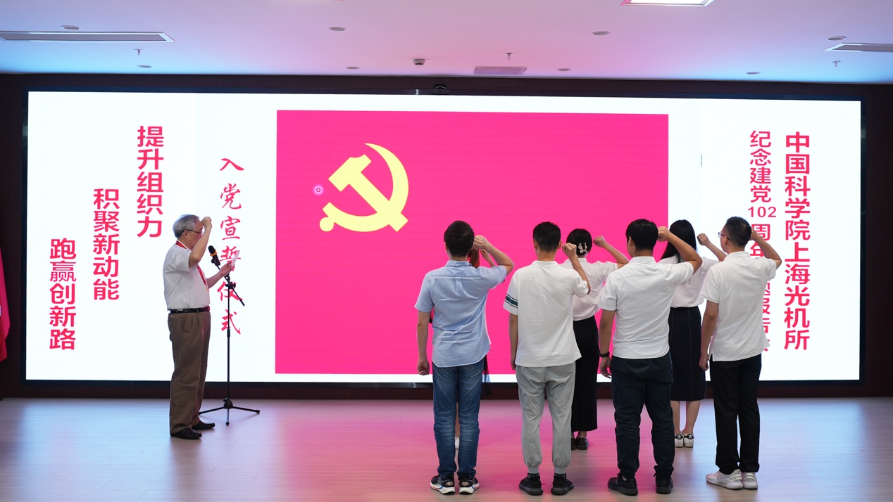 新党员入党宣誓仪式上,在纪念章获得者侯立松研究员带领下,全体新党员进行入党宣誓,砥砺初心,不断前行。