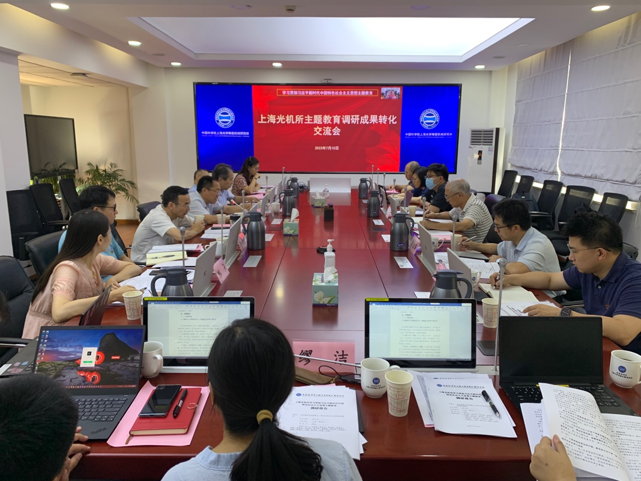 为推进学习贯彻习近平新时代中国特色社会主义思想主题教育走深走实,切实将调查研究成果转化为推动研究所高质量发展的动力,7月15日上午,上海光机所召开主题教育调查研究成果转化交流会,7个调研课题组交流汇报调查研究成果和转化成效。中国科学院主题教育第十四指导组组长成建军、组员胡晨杰到会指导。上海光机所领导班子成员、课题协管党委委员和所务委员、课题联络员参加交流会,会议由党委书记邵建达主持。