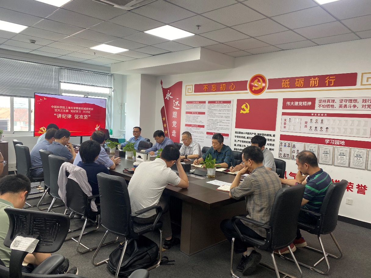 “讲纪律·促攻坚”大讨论中,每位党员梳理了自己承担的科研任务以及下一步工作计划,就参与的多项相关任务面临的问题和差距进行了初步研讨,对可能解决途径进行了初步分析,阮昊、周佳琦、吕德胜、徐震、谢鹏等多位党员进行了重点发言,纷纷表示要不断加强纪律意识,团结协作,服从所里安排指挥,不折不扣完成任务,全力参与攻坚凝练,在抢占科技制高点征程中发挥先锋带头作用。