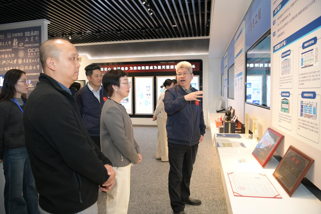 在中国激光杂志社党支部书记马沂的带领和航天八院808所所长助理、信息咨询事业部部长宋振亚的陪同下,杂志社党员一行首先参观了航天八院展厅。展厅内珍贵的历史照片、逼真的航天模型和原件以及气势磅礴的视频资料,展示了上海航天事业从无到有、从弱到强的光辉历程。讲解员详细介绍了航天八院在运载火箭、应用卫星、载人航天、月球与深空探测等领域的成就,并阐述了光学技术在这些领域中的关键作用。此外,党员们还深刻感受到了航天人“特别能吃苦、特别能战斗、特别能攻关、特别能奉献”的使命精神。