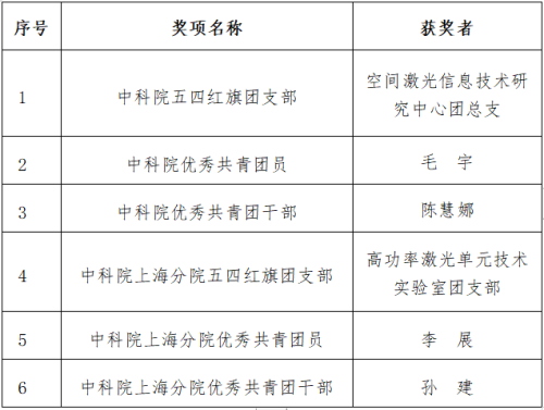 上海光机所青年和集体荣获多项上级团组织“两优一红”表彰