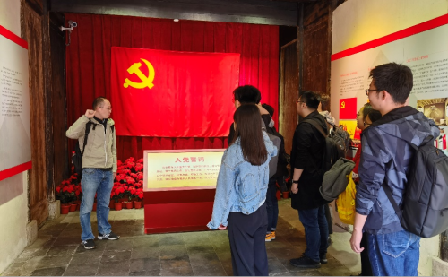 在讲解员的引领下,党员们通过参观展厅里陈列的珍贵文物和历史照片,了解了新四军苏浙军区部队抗日斗争的历史,重温了新四军从组建、发展到壮大的光辉历程,身临其境地感受到当时新四军艰苦卓绝的斗争环境,展示了陈毅、粟裕等老一辈无产阶级革命家的无私奉献、克己奉公的革命精神和光辉业绩。参观过程中,党员同志们在支部书记的带领下重温入党誓词,铿锵有力的誓言展现出不忘初心、牢记使命的信心和决心。