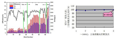 图1 终端光学组件性能实验参数分布图 图2 大能量激光穿靶孔透过率参数
