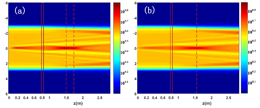 热像是由于非线性自聚焦效应导致的局域光场增强效应,其峰值强度可达平局光强的数倍到数十倍,是限制高功率激光器输出能力的一个关键因素。已有热像研究表明,单一缺陷会在非线性介质下游的共轭面上产生一个热像,而在多个缺陷或者级联非线性介质的条件下,甚至会出现轴上多峰热像。热像的位置分布规律和光场增强程度是驱动器安全设计的重要依据,对系统链路中热像的预测和规避具有极其重要的意义。