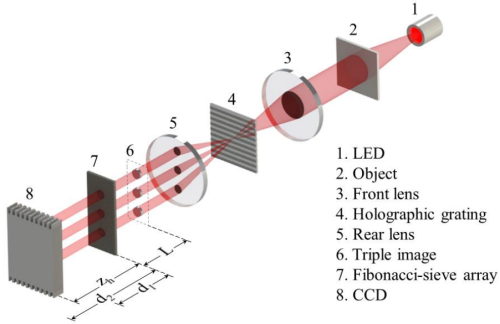 中国科学院上海光学精密机械研究所高功率激光物理联合实验室在古希腊梯子光子筛的基础上,通过降维发展出了一类斐波那契移相光子筛,实现了宽带光源的共光路单次无约束相移剪切全息成像,相关成果发表于《应用物理快报》(Applied Physics Letters)。