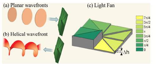 上海光机所强场激光物理国家重点实验室6月10日发表在国际物理学期刊《物理评论快报》上的论文“Light Fan Driven by a Relativistic Laser Pulse”[Phys.Rev.Lett.112, 235001(2014), http://journals.aps.org/prl/pdf/10.1103/PhysRevLett.112.235001],提出利用相对论强激光照射特殊设计的结构靶(光扇)来研究角动量效应。研究发现,结构靶(光扇)在强激光的照射下高速旋转,同时反射具有角动量的相对论拉盖尔-高斯光。