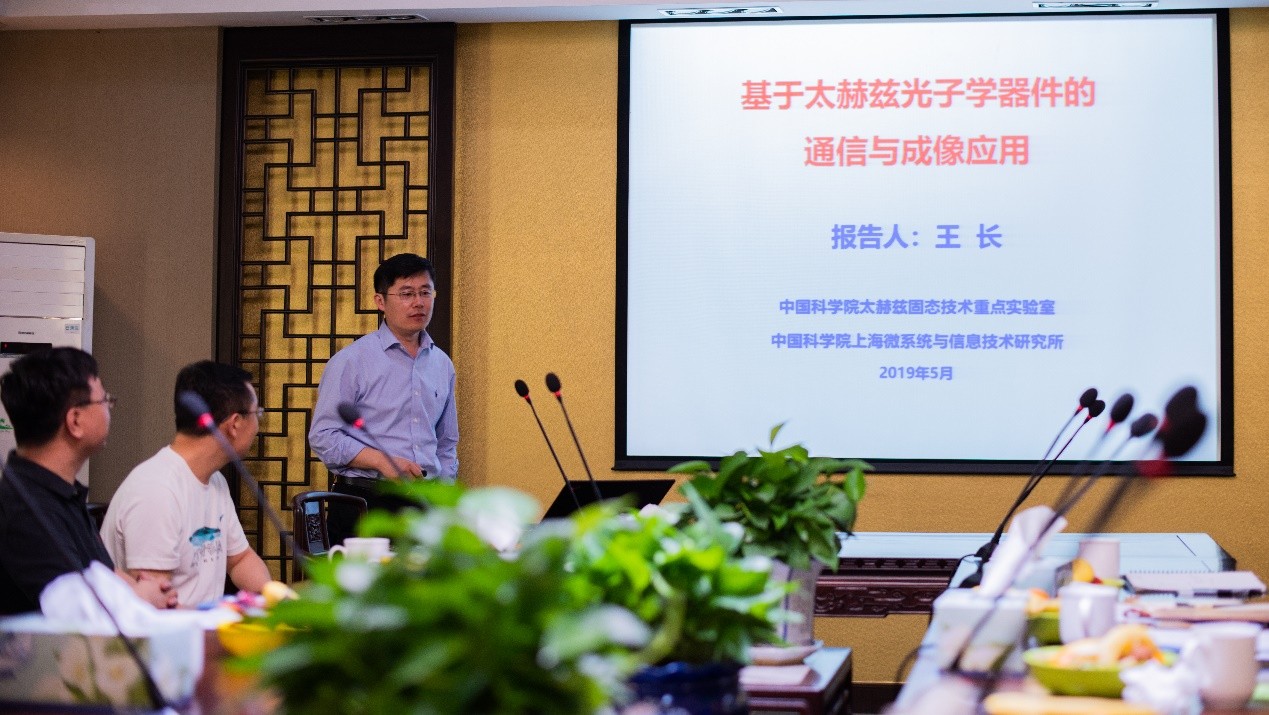 太赫兹(频率范围:0.1-10 THz; 1 THz=1012 Hz)技术在医学成像、空间通信等领域具有重要应用前景。长期以来,由于缺乏高效THz辐射源和探测器,THz波段还没有被完全认知,所以其被称为THz间隙(“terahertz gap”)。王长研究员首先简要介绍了中科院上海微系统与信息技术研究所、中科院太赫兹固体技术重点实验室的基本情况和THz 量子级联激光器(quantum cascade laser, QCL)、基于多量子阱结构的THz量子阱探测器(quantum well photodetector, QWP)的基本原理。随后,主要介绍了他们团队在开展了THz QCL和THz QWP的设计与研制工作,提升了QCL的输出功率,达到瓦级输出,研制成功了宽谱高灵敏度的QWP器件;基于这些高性能的光子学器件,开发了太赫兹高速调制与探测技术,实现了基于THz波的实时音频和视频信号传输;设计了快速扫描成像系统,实现了基于THz QCL的共焦显微成像等主要工作进展。报告结束后,王长研究员和我所强场激光物理国家重点实验室相关研究人员就太赫兹产生和应用等进行了深入、系统地讨论。(强场激光物理国家重点实验室供稿)