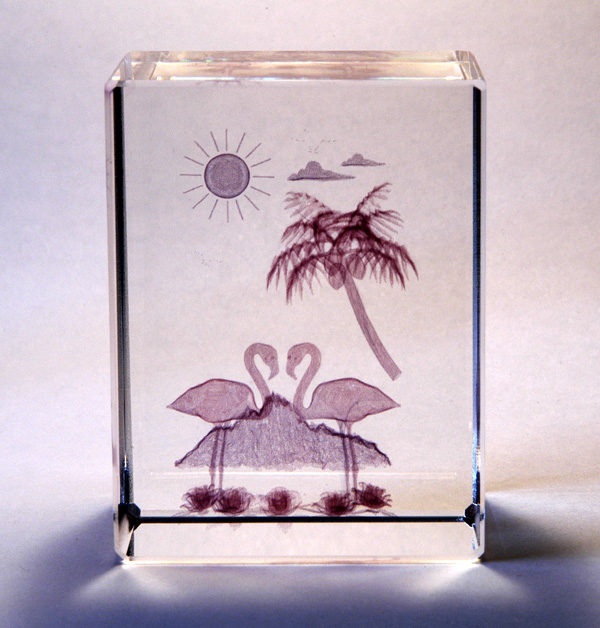 也许大家在工艺品市场上都曾见过无色激光内雕产品吧,那晶莹剔透的感觉,惟妙惟肖的人物或景观图,着实让人喜欢。如果您想拥有一份“自己”的内雕产品,商家甚至可以现场雕出您的三维立体图。大家可能有所不知,这个在过去十年中拥有很大市场规模的内雕艺术品产业,其原创技术起源于我所“激光损伤研究”。但是随着生产规模的扩大、产品的普及和市场的激烈竞争,近几年来,无色激光内雕产品市场日趋疲软,利润率大幅下降,更高艺术欣赏价值的内雕产品呼之欲出。