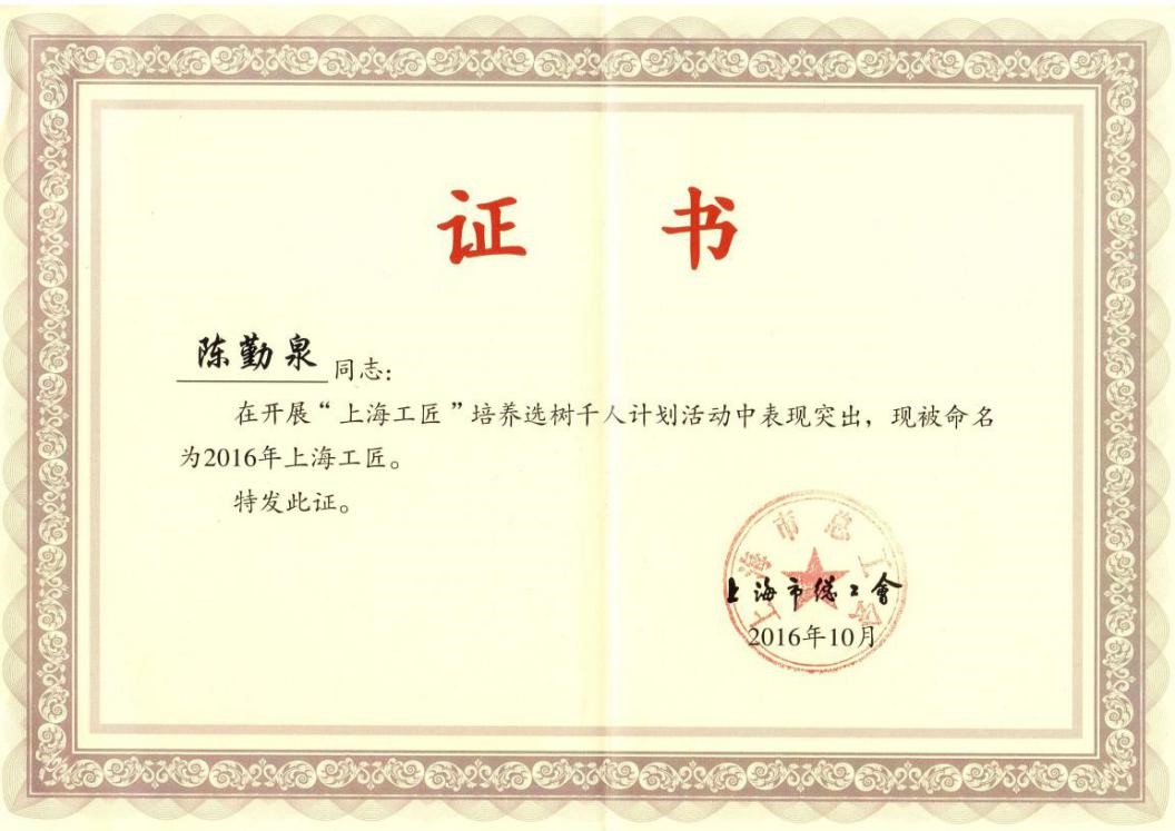 10月27日,上海市总工会等部门联合举办上海市首届“上海工匠”表彰大会,上海光机所恒益公司陈勤泉同志荣获上海市首届“上海工匠”荣誉称号,同时被上海市总工会授予“上海市五一劳动奖章”。 上海在全国首次提出“上海工匠”概念,准备用10年时间培养选树1000名“上海工匠”,打造一支与加快建设上海科技创新中心和实施“中国制造2025”要求相适应的高技能领军人才。为贯彻落实上海市总工会发布的“上海工匠”培养发挥“上海工匠”的示范引领作用、提升上海工匠品牌效应、打造一支“中国制造”的高技能领军人才队伍的号召,上海光机所工会和恒益公司根据要求推荐了相关符合条件的员工。经层层考评,恒益公司陈勤泉同志荣获上海市首届“上海工匠”荣誉称号。根据上海市总工会文件规定,符合条件的2016年“上海工匠”同时授予“上海市五一劳动奖章”称号。 陈勤泉同志自1999年入职以来就一直从事光学精密环抛工作,至今为止已连续参与包括神光Ⅱ、神光Ⅲ主机等重大科研项目在内的大口径光学元件加工工作,成为光学技术加工队伍的核心骨干力量,为所内外重大科研工程项目完成作出了杰出的贡献,曾获2013年度“中科院技术能手”荣誉称号。 “率先行动”计划和上海科创中心建设,赋予上海光机所全体职工新使命和新任务,全所职工要立足本职、胸怀全局,大力弘扬精益求精、严谨细致、追求完美、创造极致、攻坚克难、创新超越的工匠精神,唱响“中国梦?劳动梦”的时代主旋律。(所工会、恒益公司供稿)