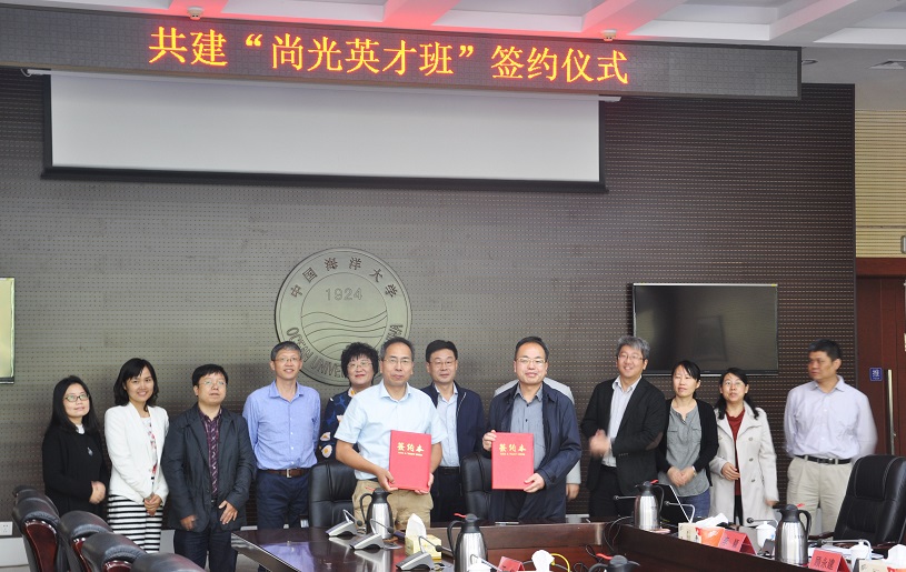 10月11日上午,上海光机所与中国海洋大学(以下简称“海大”)信息科学与工程学院共建“尚光英才班”签约仪式在海大图书馆第一会议室举行。上海光机所副所长陈卫标和海大党委常委、组织部部长丁林代表双方签约。海大信息科学与工程学院党委书记于波,副院长顾永健、管磊,物理系副主任李颖,海洋技术系副主任林巨,上海光机所研究员刘德安、刘继桥、晋云霞,人事教育处副处长丁虹等共同参加了签约仪式。本次签约仪式由海大信息科学与工程学院党委副书记、副院长张欣泉主持。