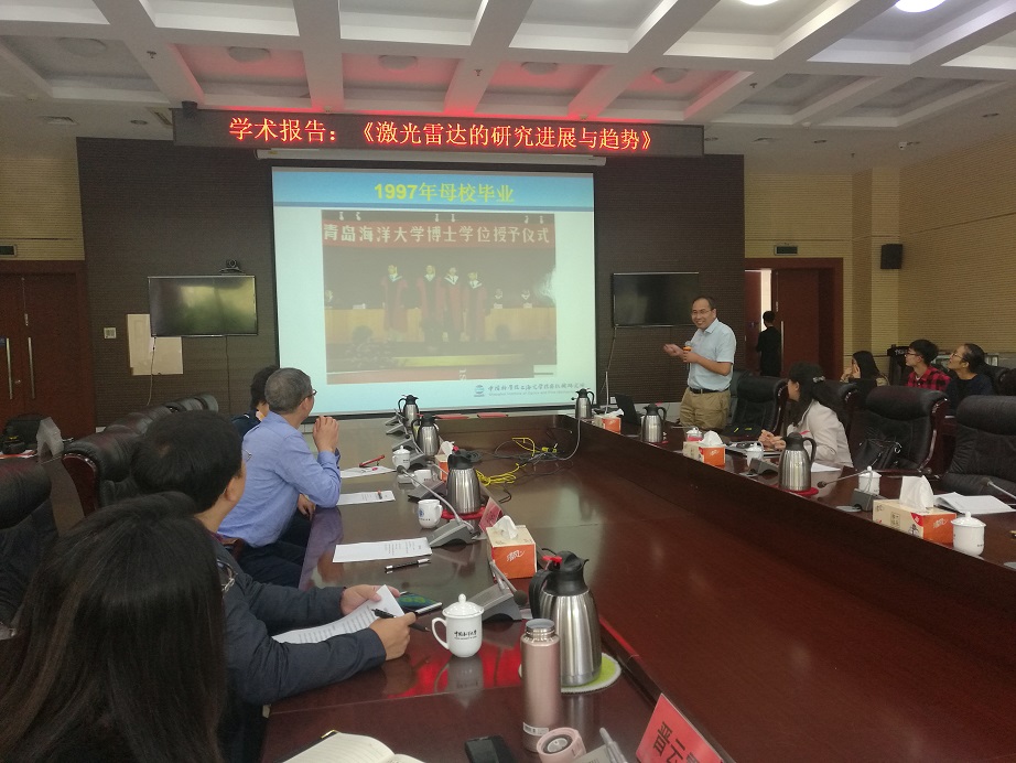 签约仪式结束后,陈卫标又向与会人员详细介绍了上海光机所的发展历程、“十三五”期间已取得的丰硕成果及研究生教育等情况,并作了题为“激光雷达的研究进展与趋势”的学术报告。