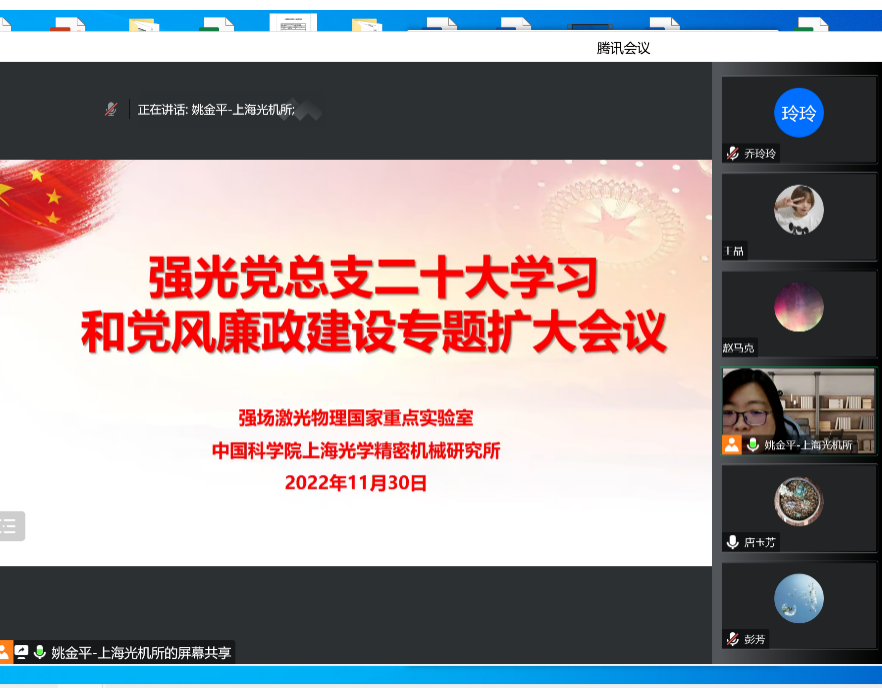 强场激光物理国家重点实验室党总支召开党的二十大精神学习和党风廉政建设专题扩大会议