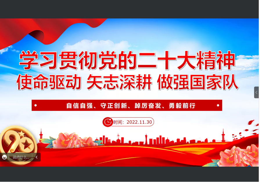 11月30日,强场激光物理国家重点实验室(以下简称:强光实验室)党总支召开党的二十大精神学习和党风廉政建设专题扩大会议,邀请上海光机所纪委书记彭芳,所纪委委员、纪检监督审计室主任唐玉芳作专题报告。强光实验室党总支书记姚金平、总支纪检委员宋立伟在会议上作学习报告。上海光机所副所长、强光实验室主任冷雨欣出席会议。会议由姚金平主持,170余人线上参会。