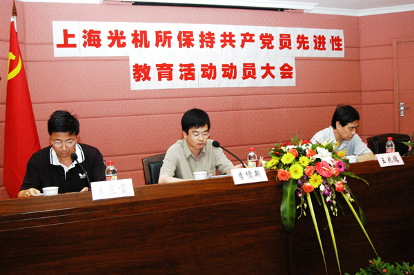 2005年7月7日下午,我所召开保持共产党员先进性教育活动动员大会。市科教党委先进性教育第一督导组组长和成员,所党政领导,党委、纪委委员,党支部书记及支委,院士,研究室和机关部门负责人,公司经理,离休党员,退休局级干部,党员代表,职工群众代表,各民主党派代表,无党派人士代表,人大代表,政协委员等150多人参加了大会。