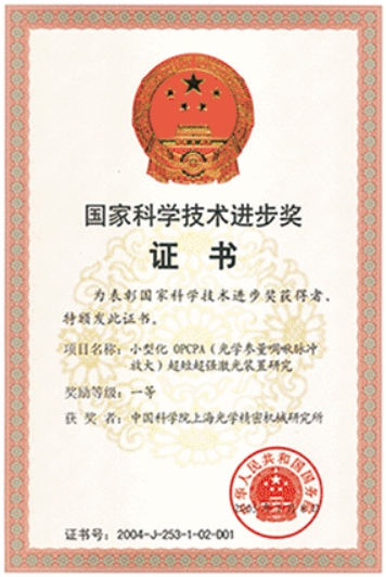 2002年,徐至展领衔的研究团队成功创建了世界首台基于OPCPA新原理的小型化新一代超强超短激光装置,远超当时国际同类研究最好结果。该项突破是中国新型高功率强激光系统的总体输出功率水平第一次在国际上取得领先地位,被国际同行评价为:“十年来国际OPCPA研究领域中最杰出的实验成就”,并获得2004年度国家科技进步奖一等奖。