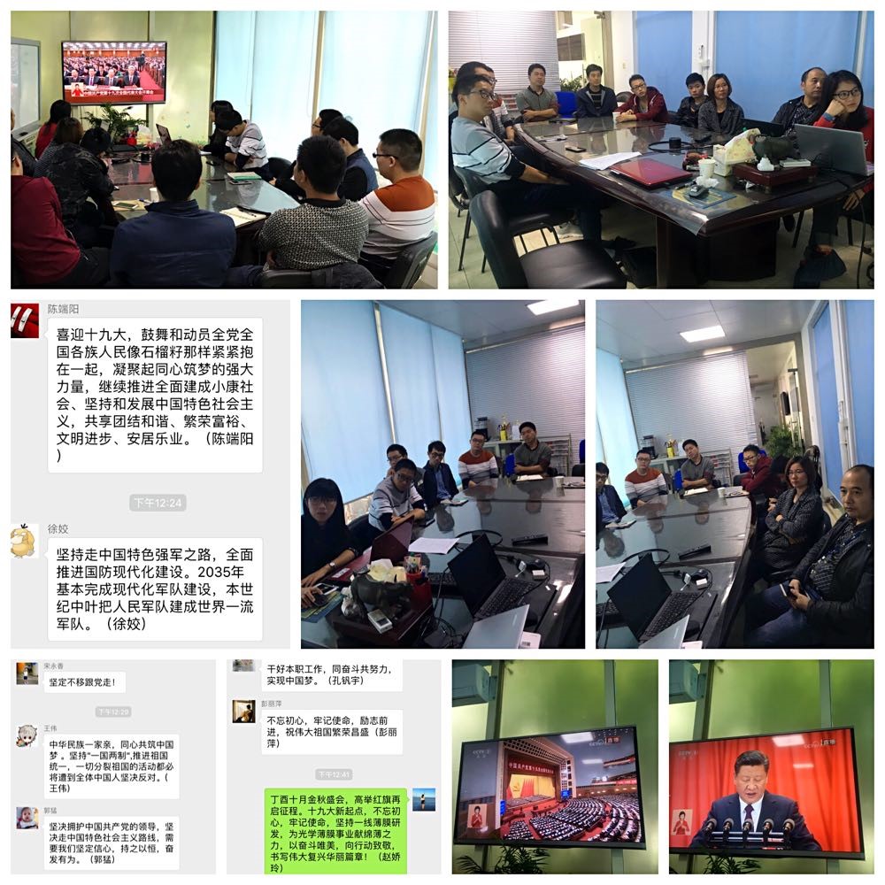 高密度光存储技术实验室党员们表示,党的十九大精神顺应时代潮流,反应了人民真实的意愿,令人鼓舞,催人奋进。作为科研人员,应当把学习贯彻十九大精神作为当前和今后一个时期的头等大事抓好,时刻准备面对挑战,全力为推进党和国家事业更好更快的发展做出自己的贡献。