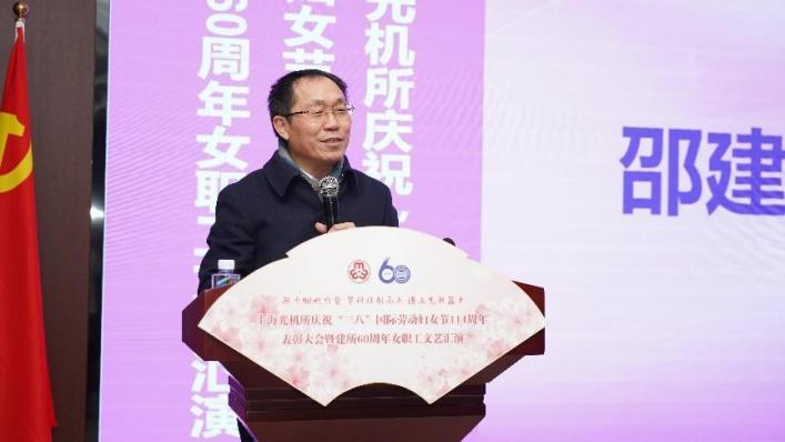 上海光机所党委书记邵建达致欢迎辞。他首先代表党政班子向各位来宾,全所女职工、女研究生致以诚挚的祝福和感谢。他表示上海光机所女性知识分子集中,在研究所60载的发展历程中,女性发挥了重要的、不可替代的作用,在所内各个领域,妇女都发挥着越来越重要的作用,在重大科研成果中几乎都有女性作为研究工作的带头人、骨干和重要参与者,妇女已真正成为上海光机所不可或缺的“半边天”。 他希望大家要以先进为榜样,更好地展现担当作为,自尊自信、自立自强,在顽强奋斗中赢得出彩人生,为实现高水平科技自立自强、努力抢占科技制高点作出新的贡献,共同谱写上海光机所新征程的崭新篇章!