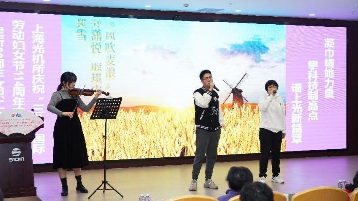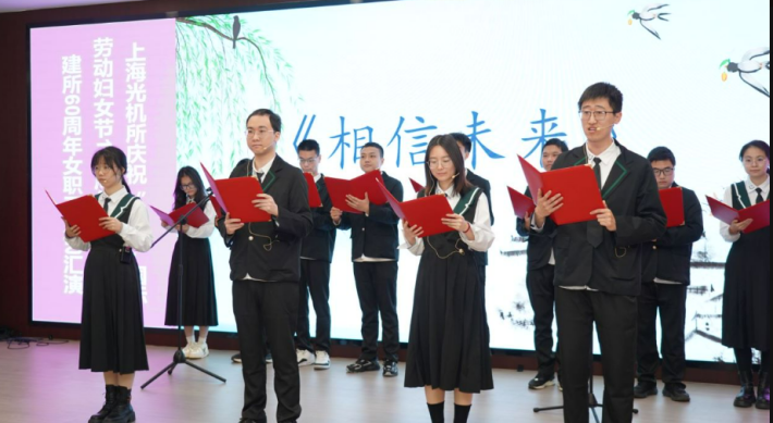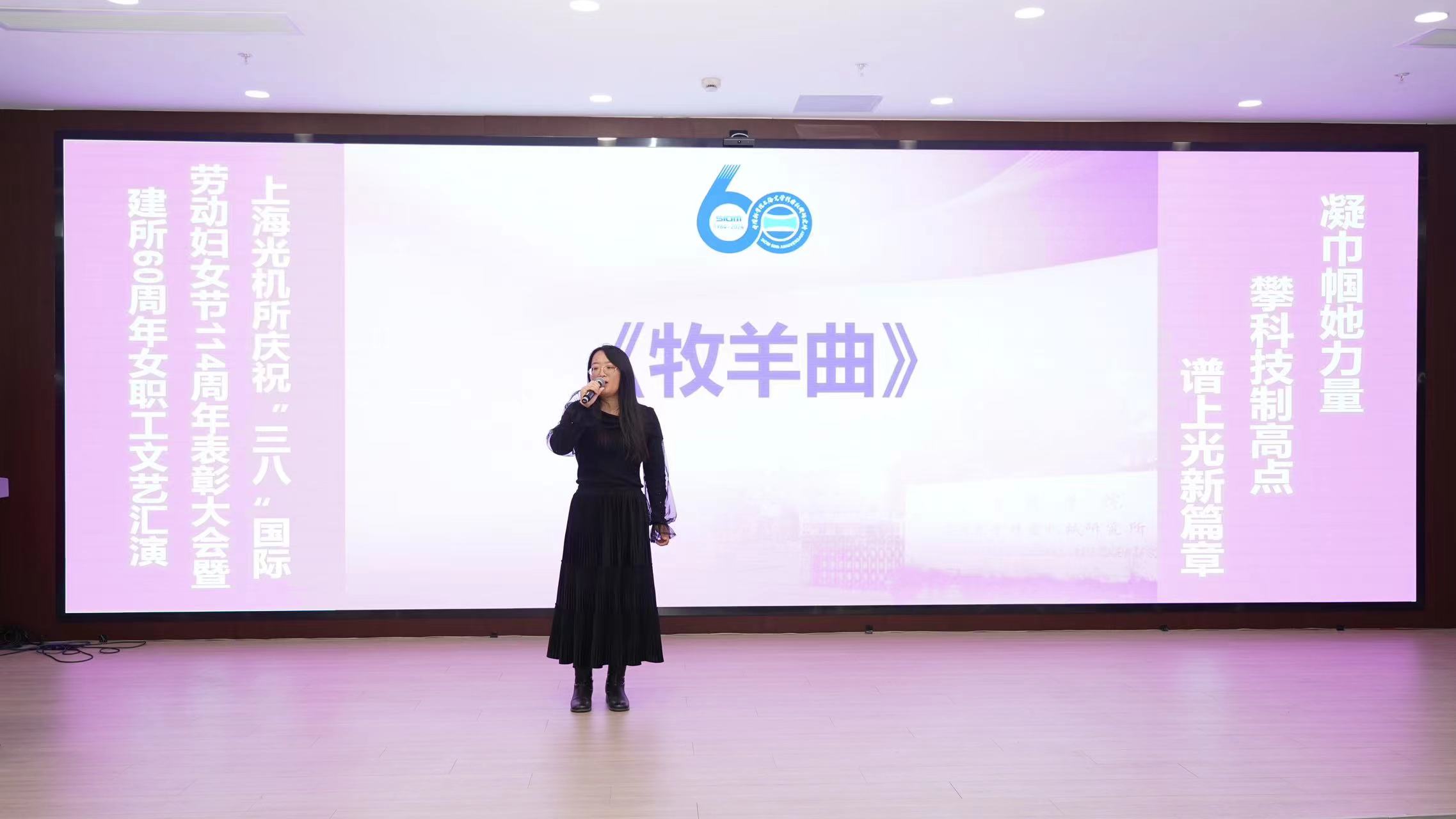 在迎接建所60周年,用实际行动努力抢占科技制高点的热烈氛围中,全所女职工自编自导自演节目,综合运用音乐、舞蹈、诗朗诵等多种形式,生动彰显了上光巾帼在做好科技工作的同时,多姿多彩的靓丽风采。