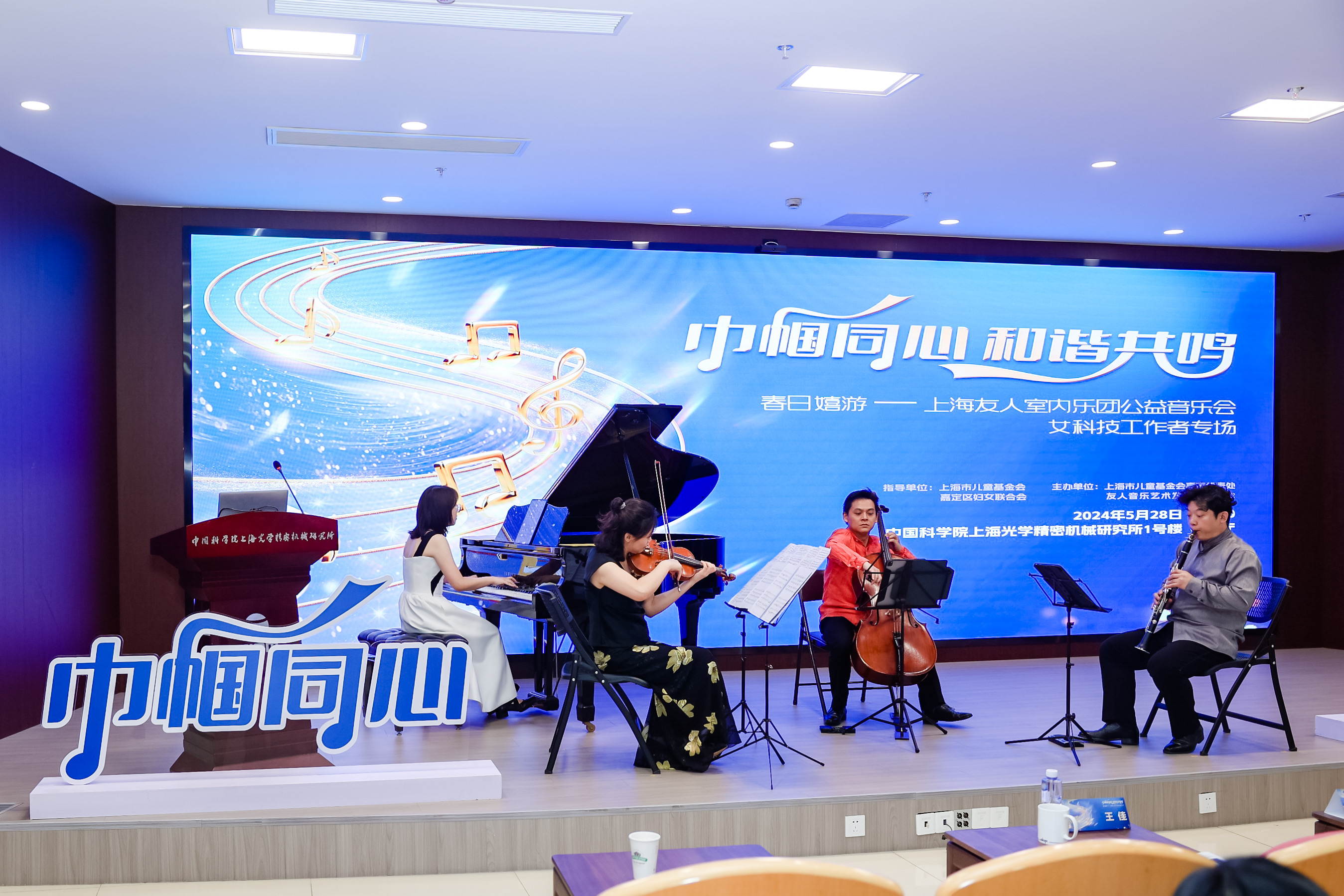 六十载峥嵘岁月,一甲子励精图治,为迎接上海光机所建所60周年,在第八个全国科技工作者日即将到来之际,5月28日下午,由嘉定区妇女联合会指导,上海市儿童基金会嘉定代表处主办的“巾帼同心 和谐共鸣”春日嬉游——上海友人室内乐团公益音乐会(女科技工作者专场)在中国科学院上海光学精密机械研究所1号楼羲和厅精彩上演,嘉定区妇联党组书记、主席姚芳,中国科学院上海光学精密机械研究所党委委员、纪委书记彭芳,嘉定区妇联副主席(挂职)王佳,嘉定区女性科技人才联谊会副会长于云出席,嘉定区女性科技人才联谊会会员、嘉定区各科研院所女科技工作者100余人参加。音乐会由上海友人室内乐团带来了5部兼具当代审美与文化底蕴的室内音乐作品,题材涉猎时代风貌、风土人情等,作品形式多样,将浪漫写意的情怀带给现场观众,令人耳目一新。