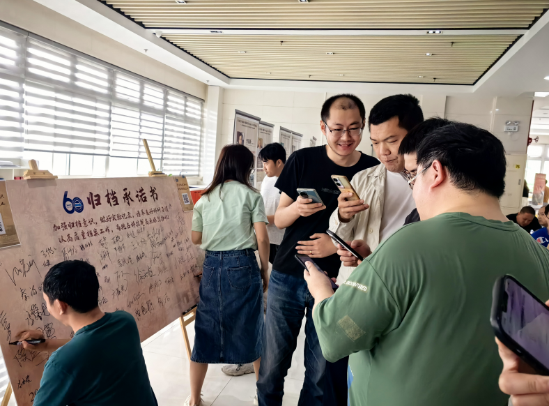 6月7日中午,所综合档案室分别在西区、北区开展“加强归档意识、做好实验记录、培养良好科研习惯,以高质量档案工作为抢占科技制高点保驾护航”承诺签名活动,同时组织全所职工开展档案知识扫码答题,推出“归档最光荣”系列档案文创,在全所营造了浓厚的档案氛围,进一步强化了科研人员的档案意识和档案法治思维,为抢占激光领域科技制高点、实现高水平科技自立自强提供支撑保障。