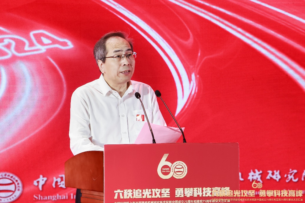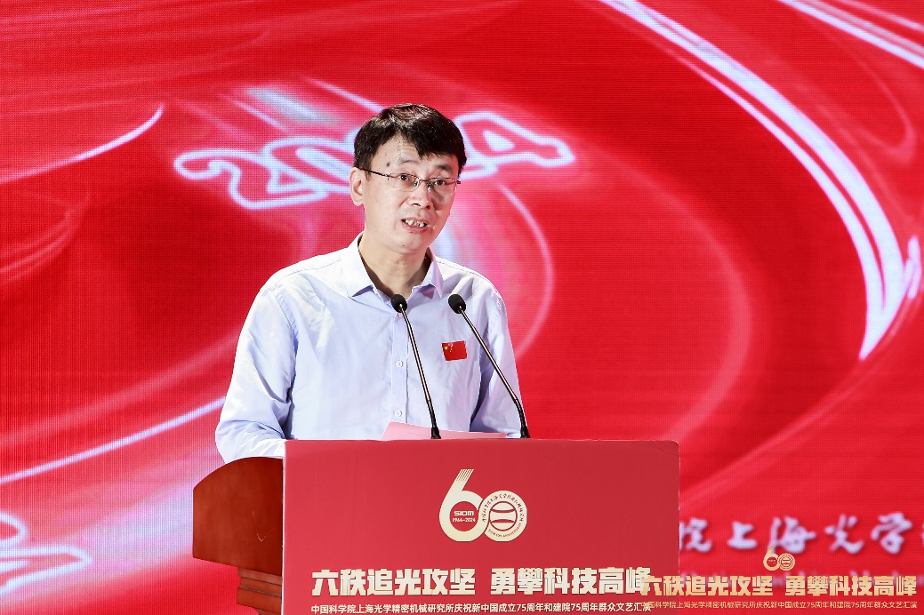 中国科学院上海分院高召兵副院长讲话,他向上海光机所广大科技工作者致以最诚挚的感谢和祝福。他指出,上海光机所作为新中国成立后最早建立的激光科学技术专业研究所,六十年来,始终围绕国家重大战略需求,取得了一系列突出的科研成果,为我国现代光学和激光与光电子学的发展及应用做出了重要贡献。同时,他也对上海光机所未来的发展寄予厚望,希望全体科技工作者继续发扬上光精神,为国家的科技进步和繁荣发展贡献智慧和力量。